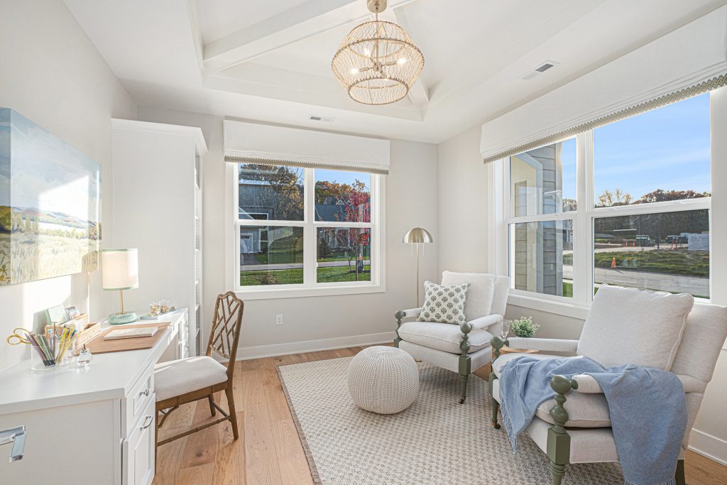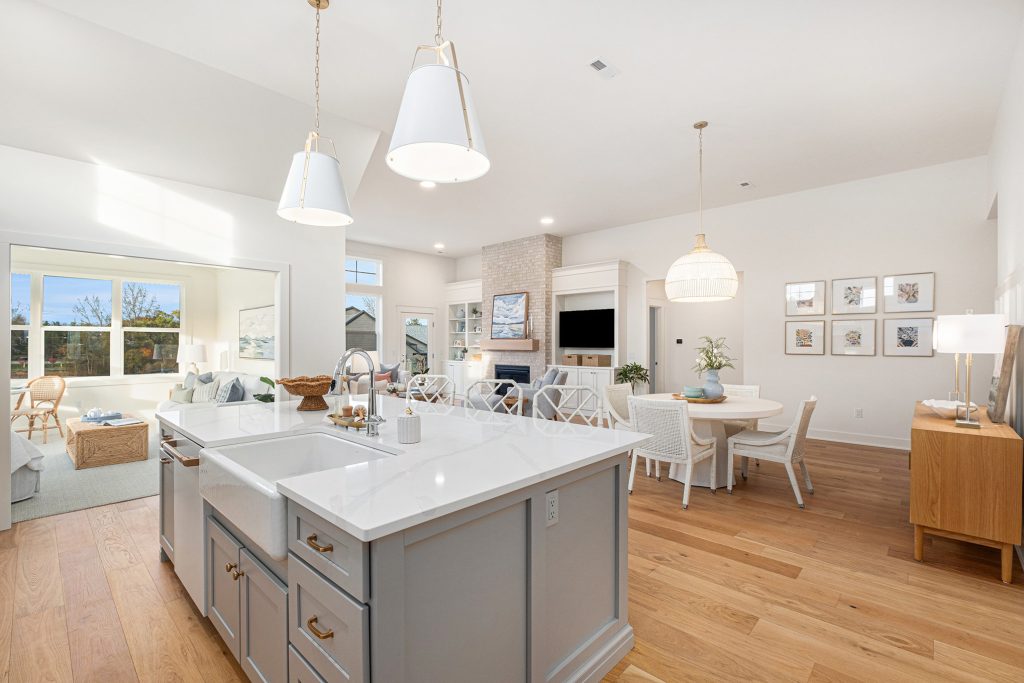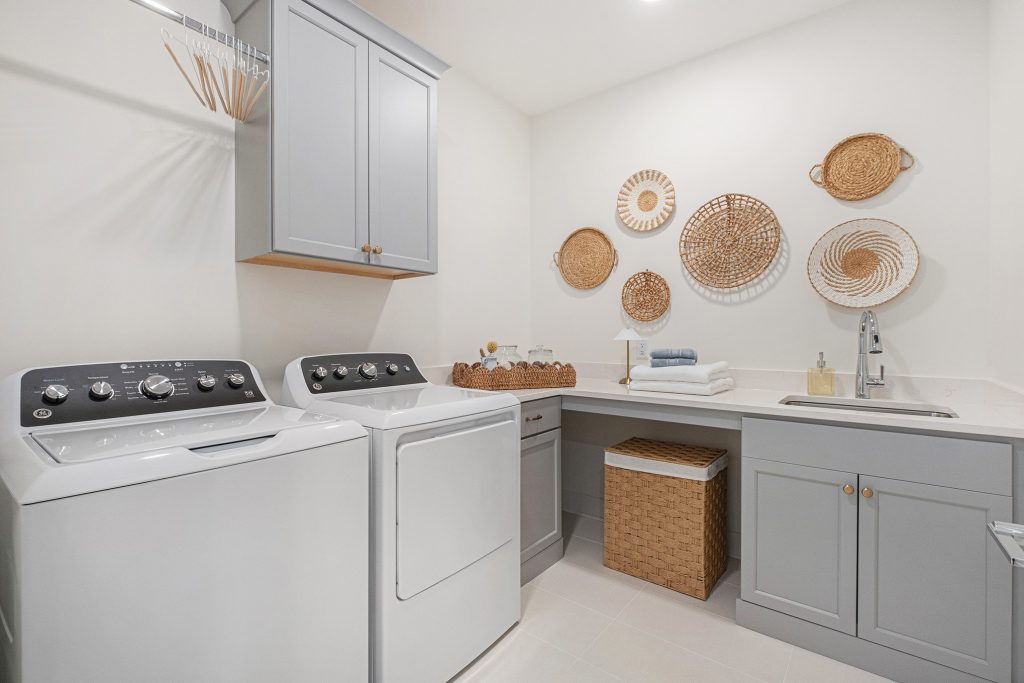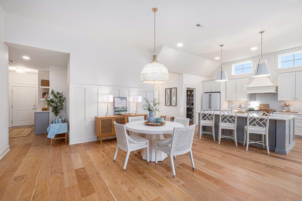 The centrally positioned dining room creates the perfect setting for intimate meals or lively gatherings, while a conveniently located, large laundry room off the primary suite adds to the home’s effortless functionality.